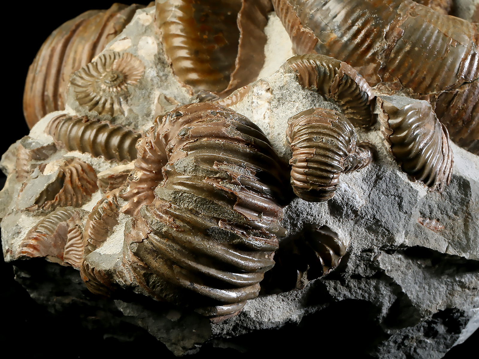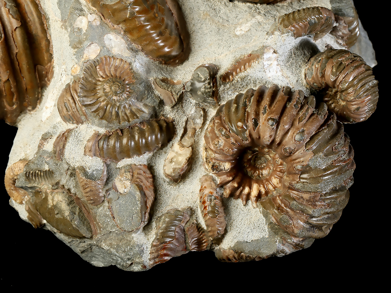 The color of the ammonites is natural.