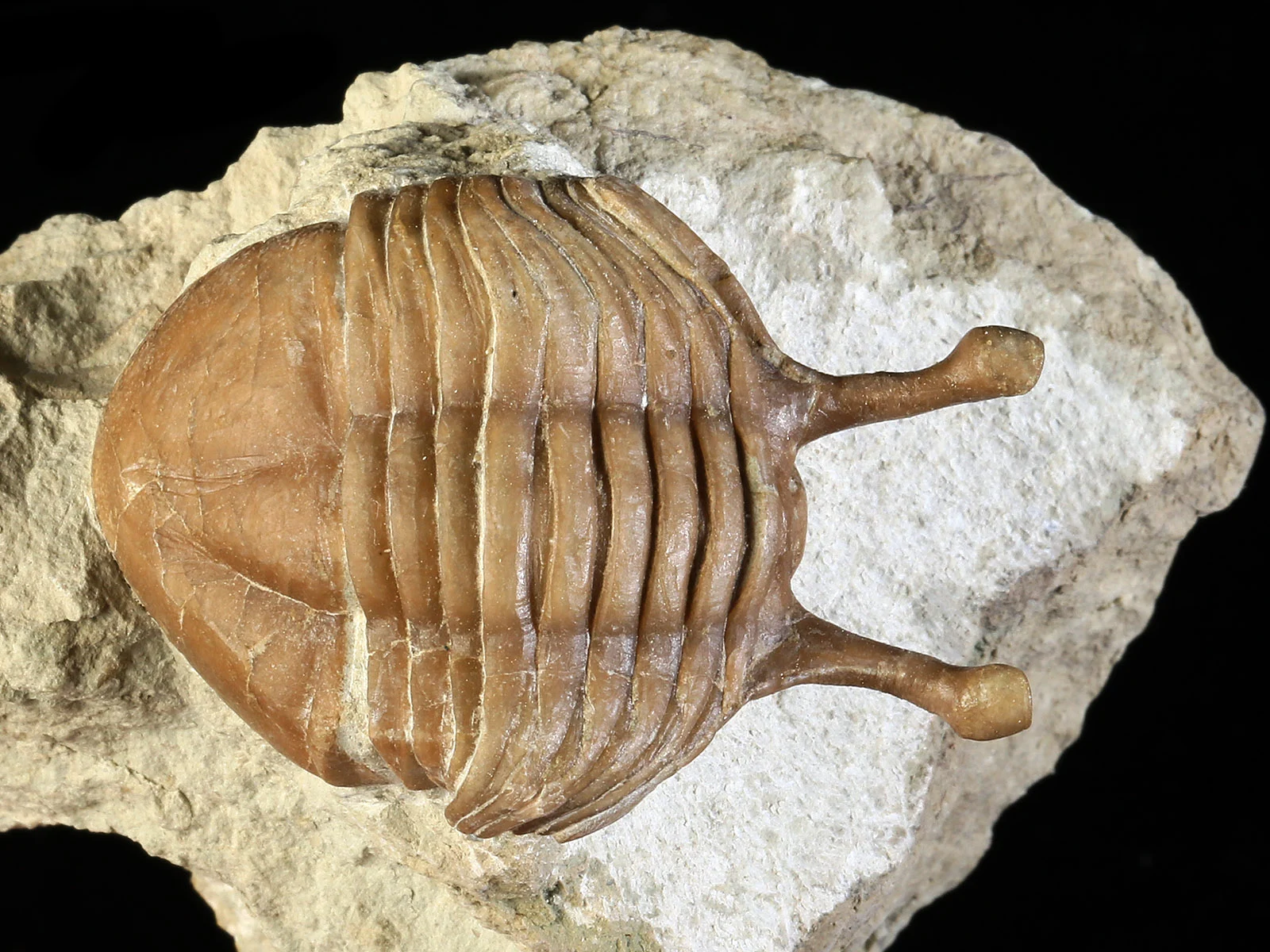 | Size | trilobite – 4.3 x 2.7 cm (in straight projection); eyes – 1 cm; specimen – 7 x 6 x 4 cm |
