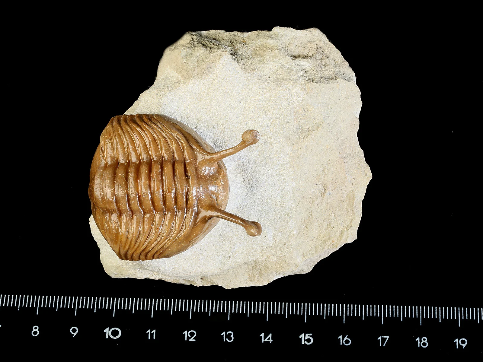 | Size | trilobite – 5.3 x 3.6 cm (in straight projection); eyes – 1.5 cm; specimen – 7.5 x 6.5 x 4.5 cm |