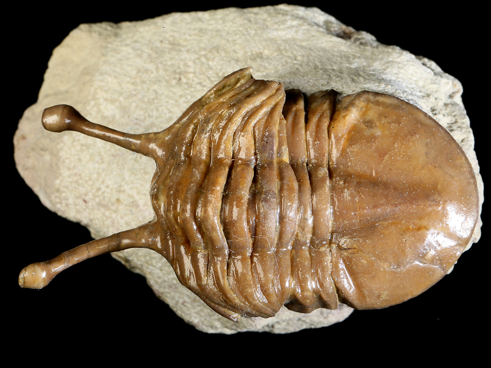 | Size | trilobite – 6.7 x 3.6 cm (in straight projection); eyes – 1.8 cm; specimen – 8 x 7 x 5 cm |