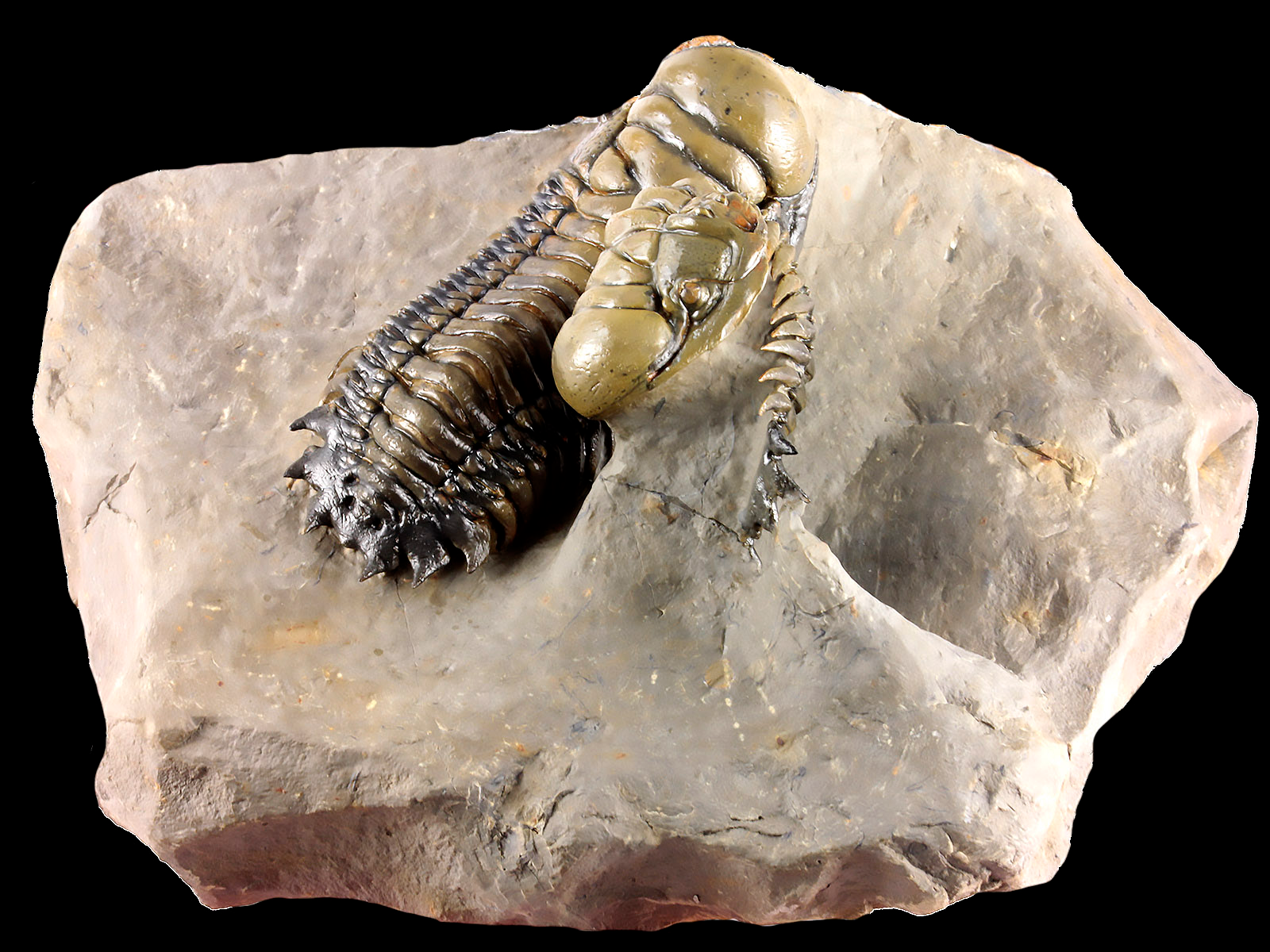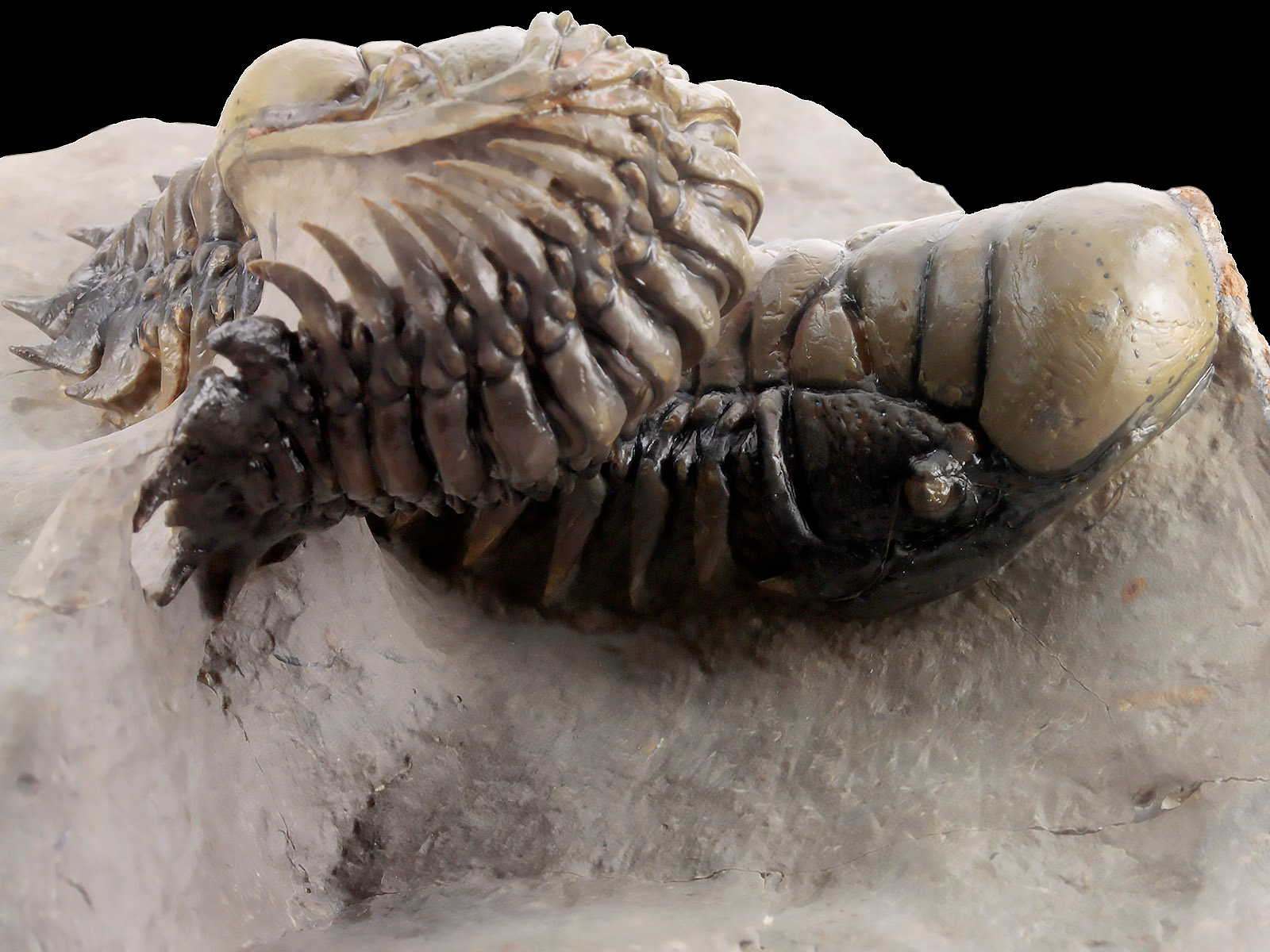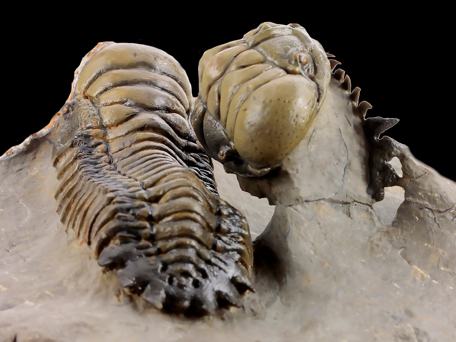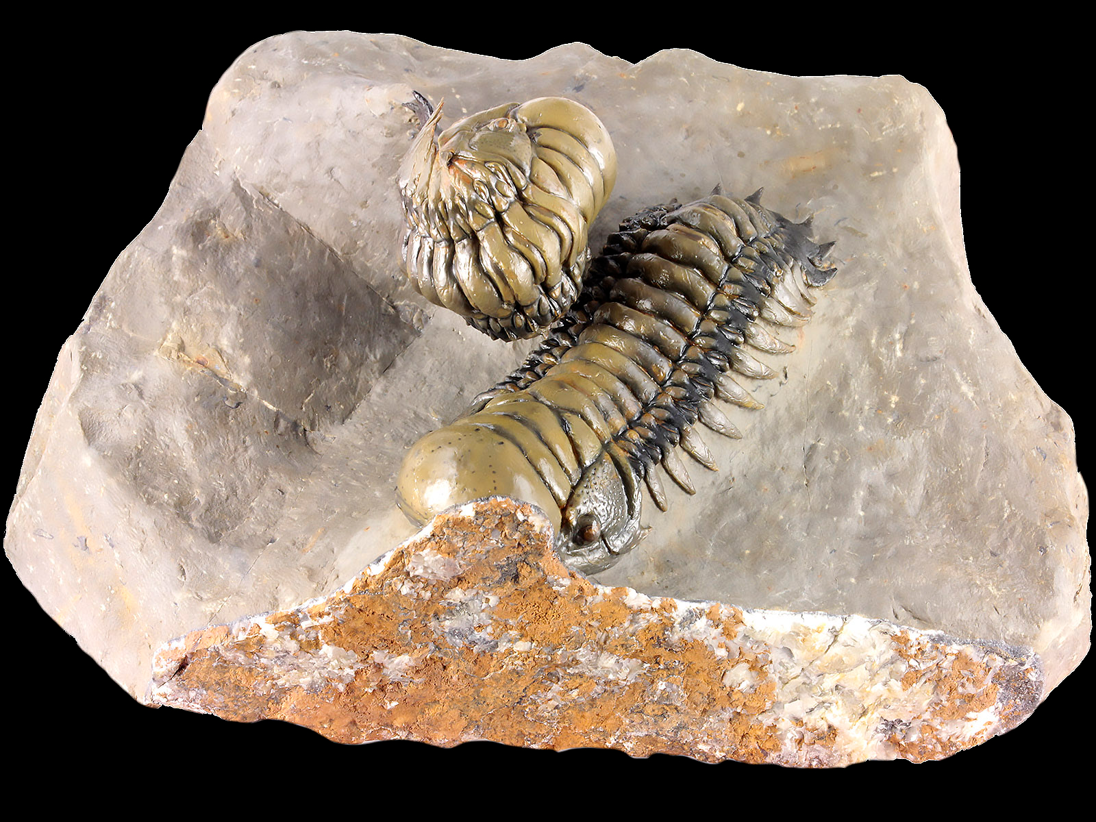 | Size | trilobites – 10 x 3.5 & 9.1 x 3.5 cm (in straight projection); specimen – 17 x 12 x 6.8 cm |