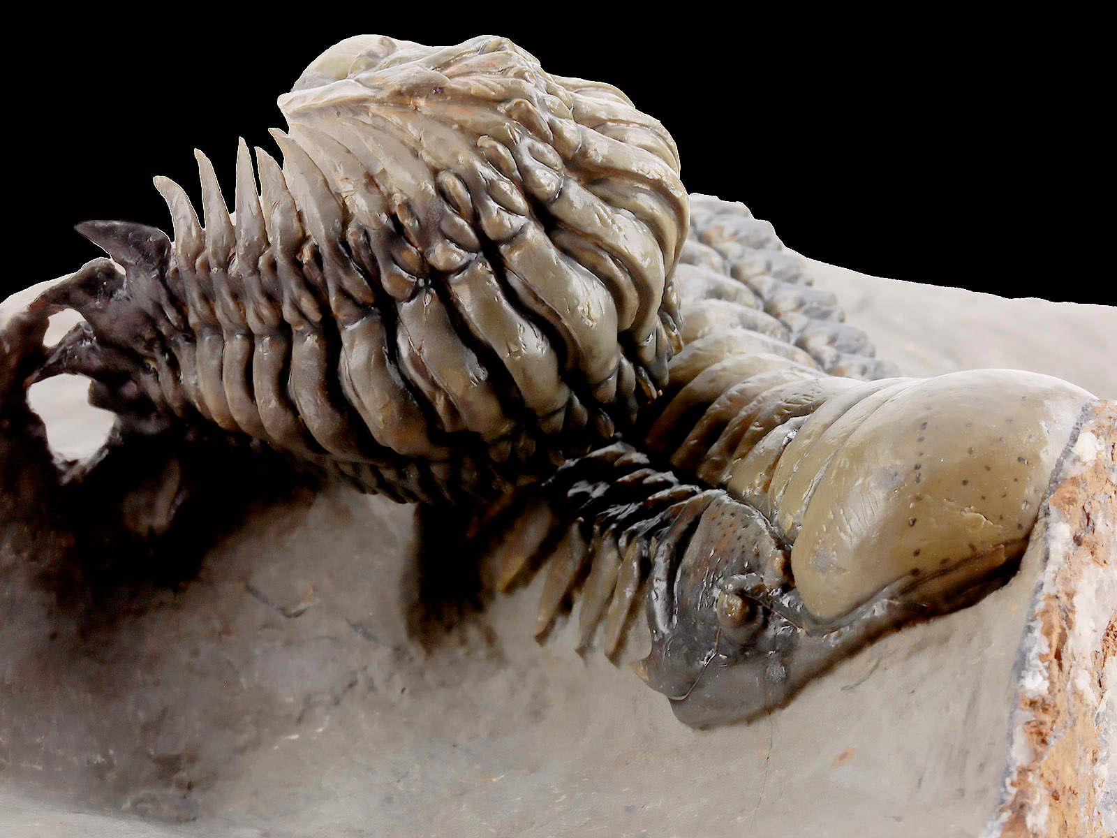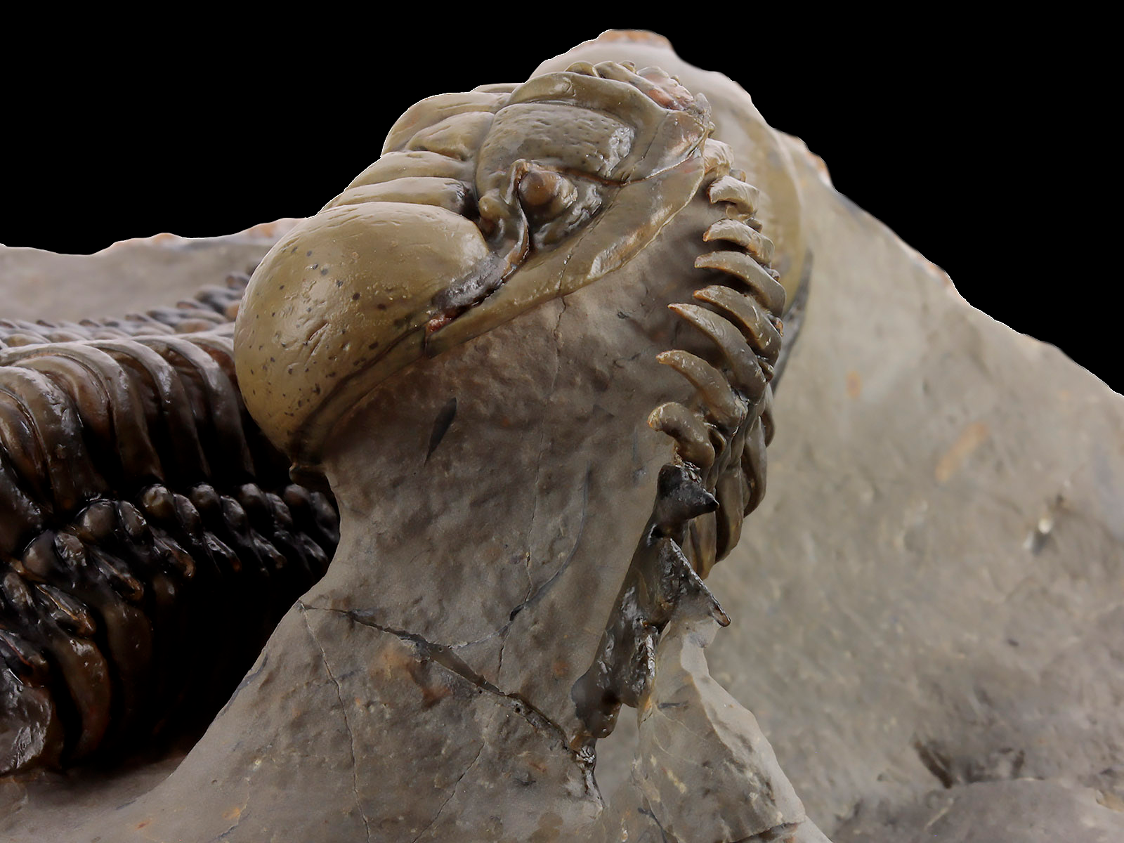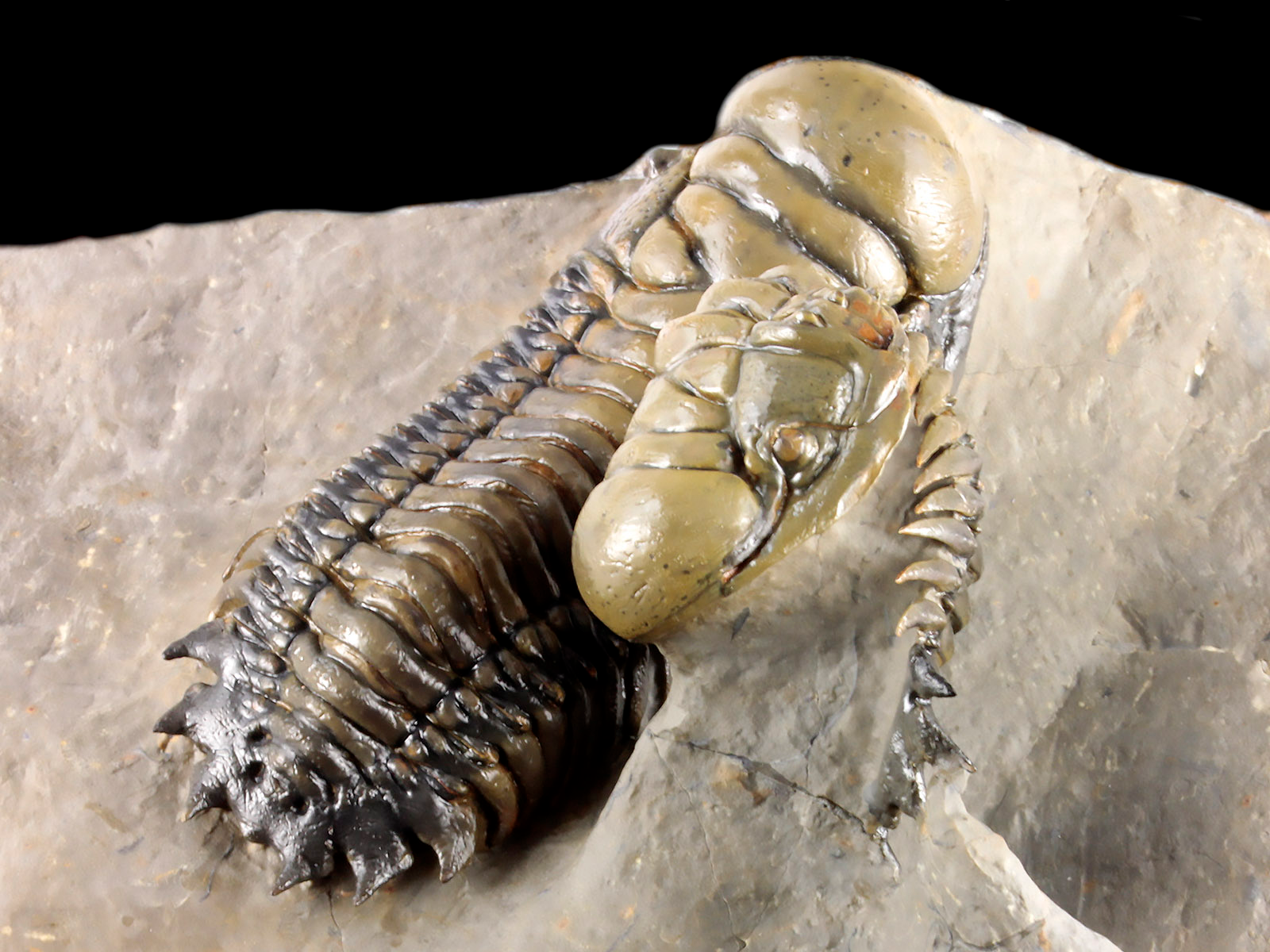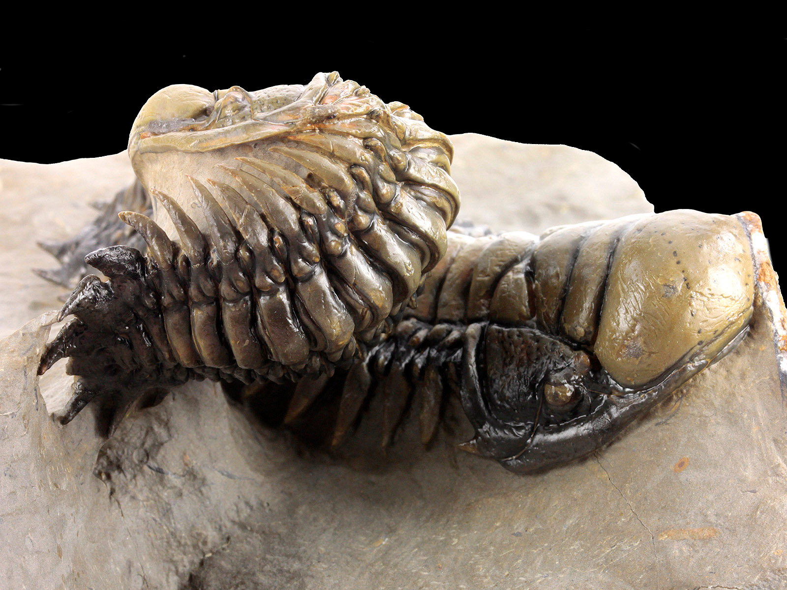 | Size | trilobites – 10 x 3.5 & 9.1 x 3.5 cm (in straight projection); specimen – 17 x 12 x 6.8 cm |
