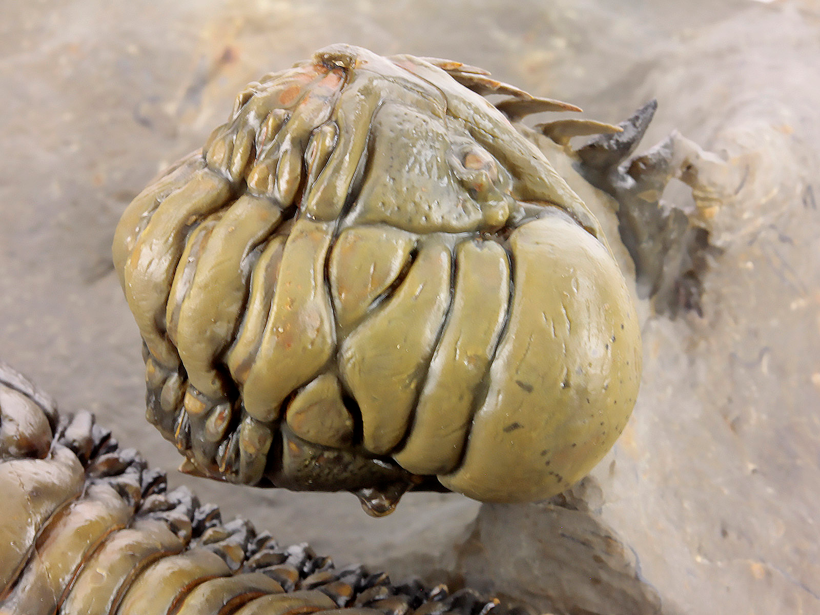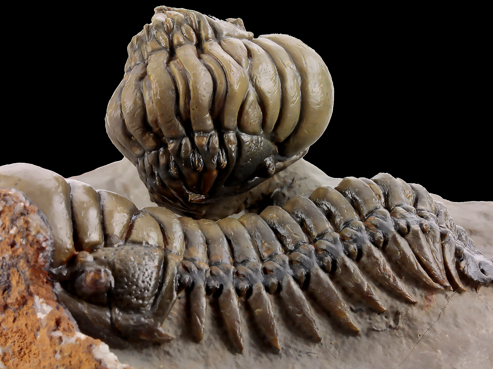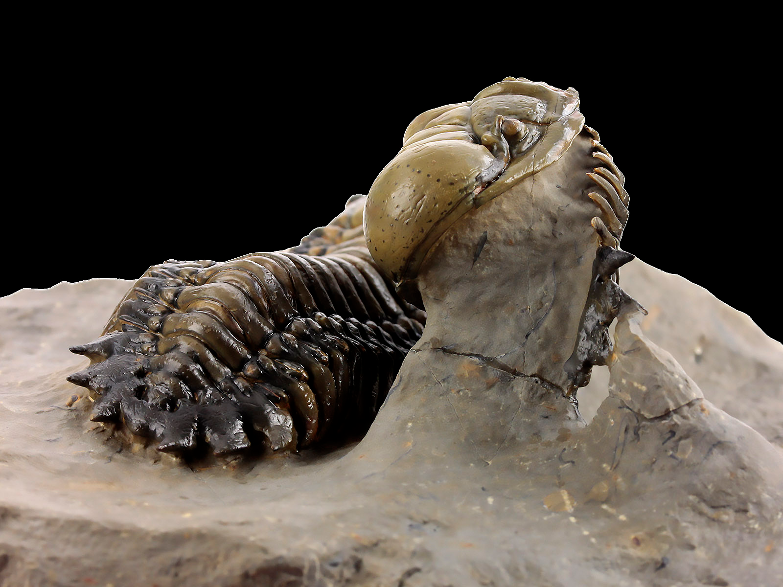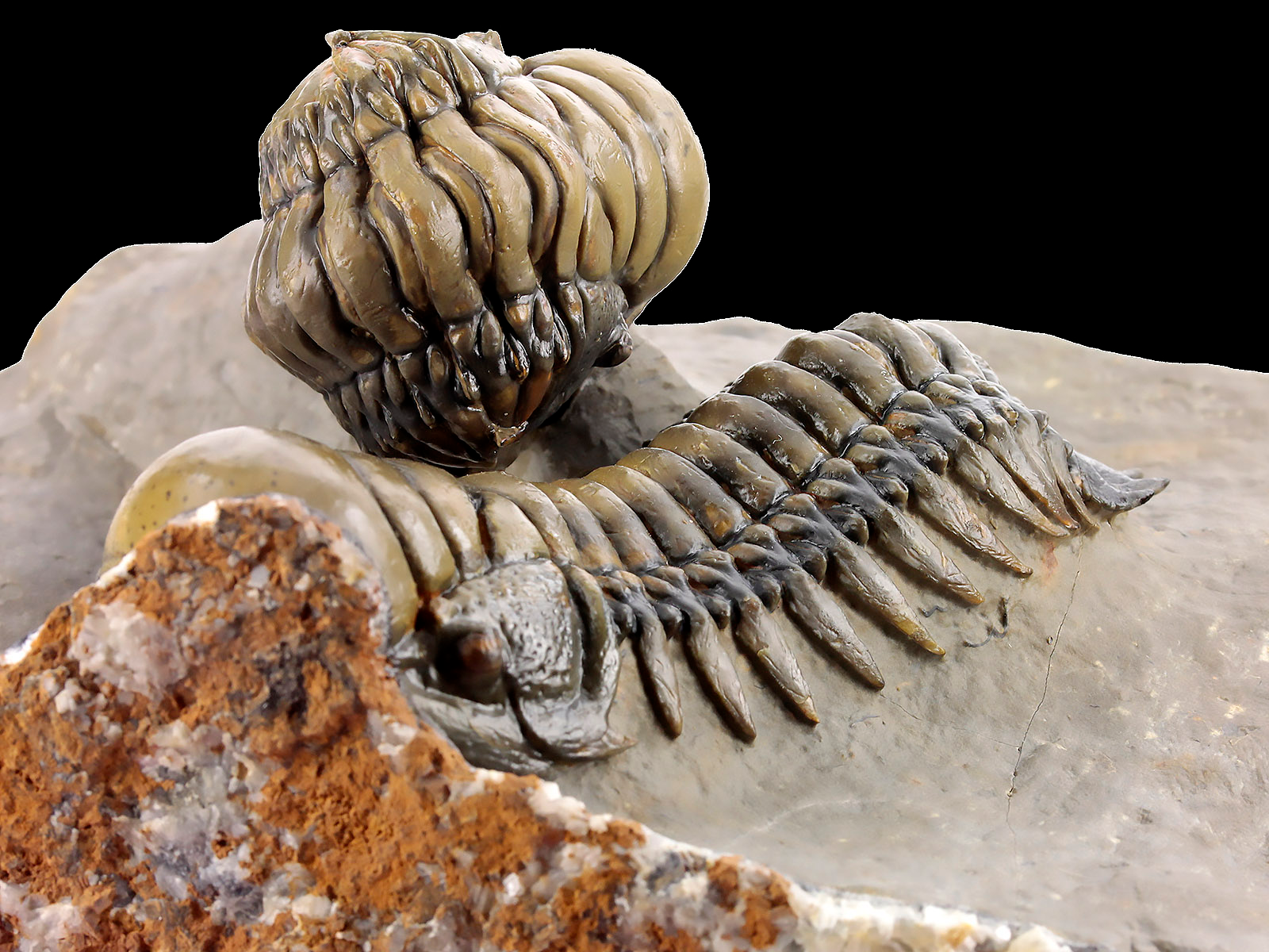 | Size | trilobites – 10 x 3.5 & 9.1 x 3.5 cm (in straight projection); specimen – 17 x 12 x 6.8 cm |